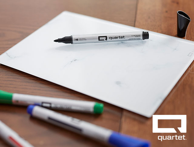 Create an inspiring, dynamic environment with Quartet from ACCO Brands. From easy-to-maintain, dry-erase writing surfaces to markers, erasers and magnets, Quartet creates an engaging workspace that brings ideas to life. GBC can help find Quartet products that work for you.