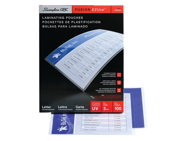 Laminating pouches make it easy to laminate individual documents. You can even laminate several small items, such as custom name tags or game pieces, within one pouch. Simply place your document inside a pouch and load into a pouch laminator to activate the adhesive bond. That’s it! Pouches can vary from business card sized to menu sized, letting you laminate a wide range of projects.