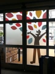 Mount your display directly on your window. Glass adhesive makes it easy to quickly catch the eye of anyone passing by your space. This type of adhesive is face mounted, meaning the adhesive is applied to the front of the image, rather than the back. This allows you to place your graphic on the inside of the window, where it’s protected from the weather and outside influences.